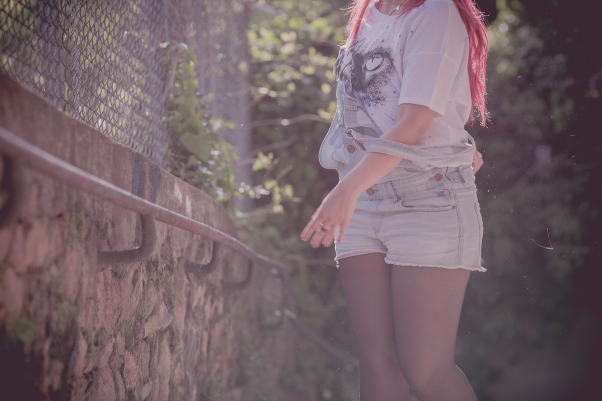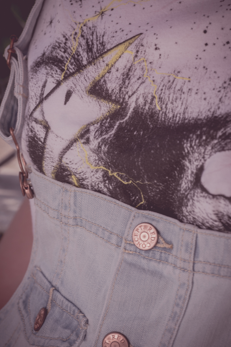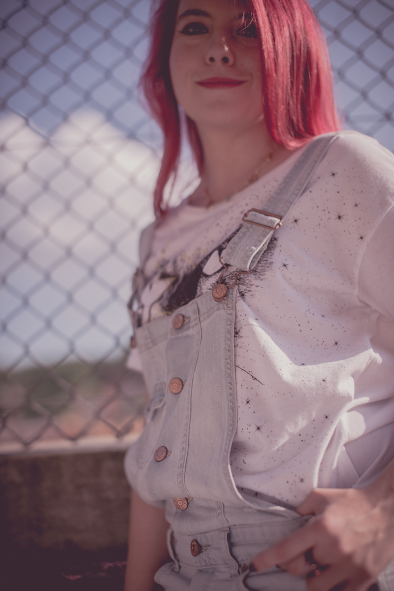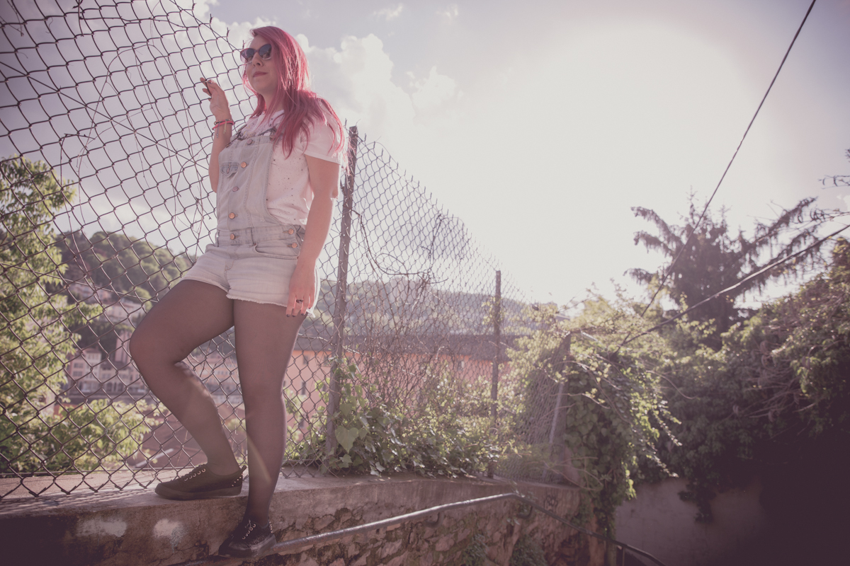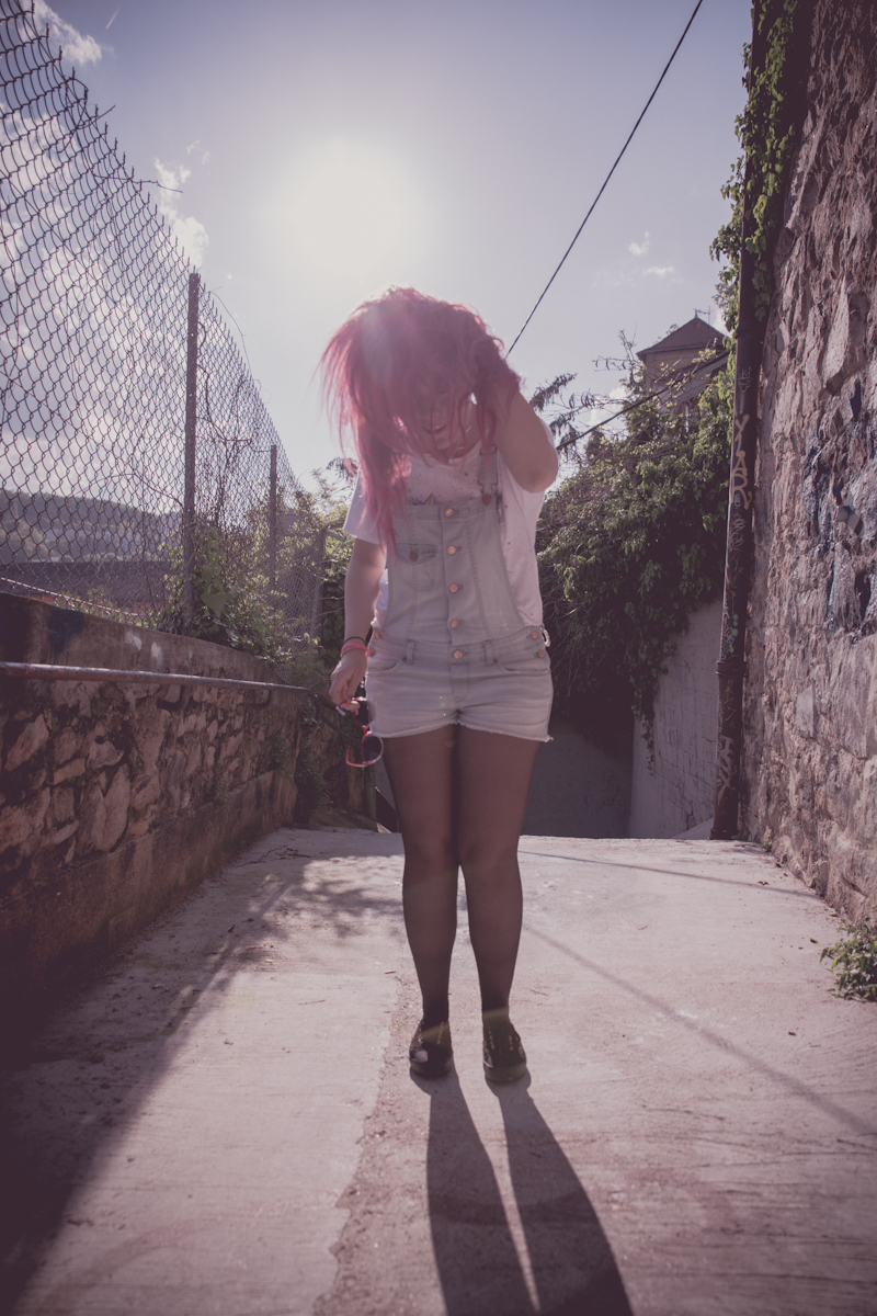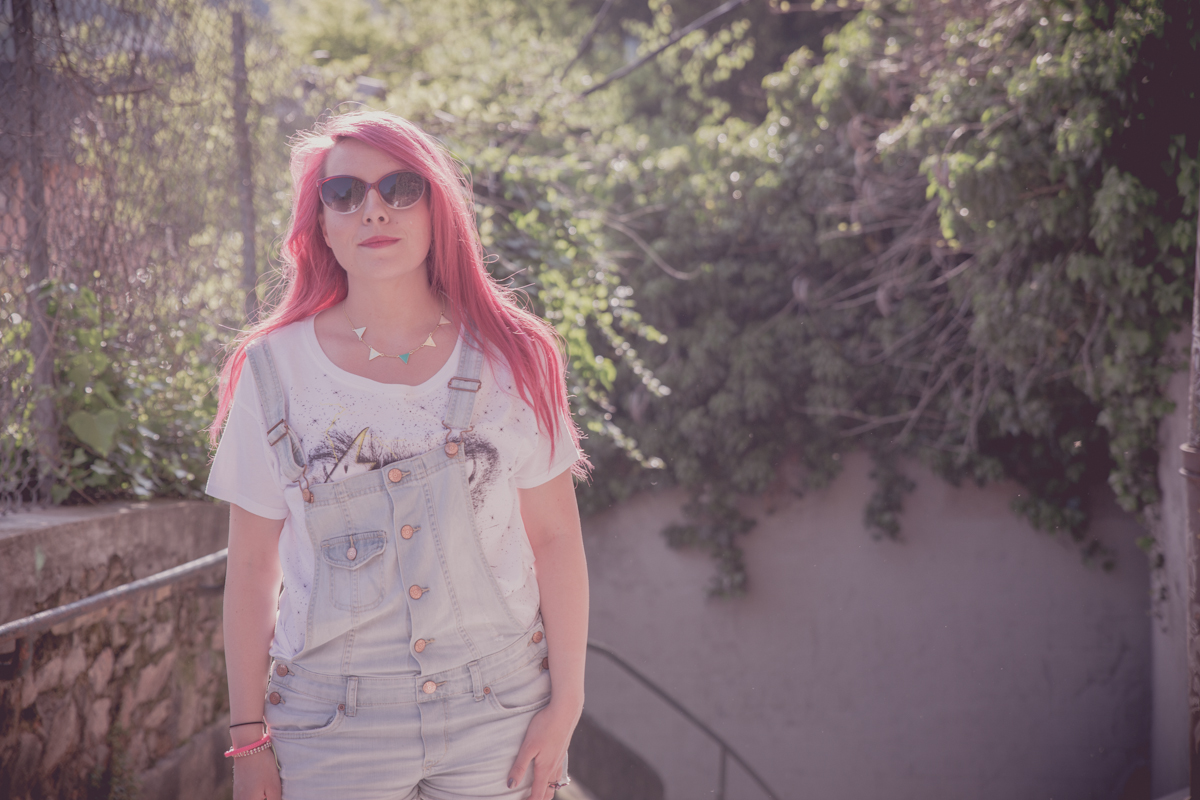 Bon la salopette n'était pas l'idée la plus géniale du siècle pour aller m'amuser, et puis j'ai un peu suivi le flux de "la mode de la salopette". Alors qu'au début je m'y suis opposée complètement, disant que ça me rappelait trop quand j'avais six ans. Mais je suis faible, et finalement, je suis toujours une enfant.