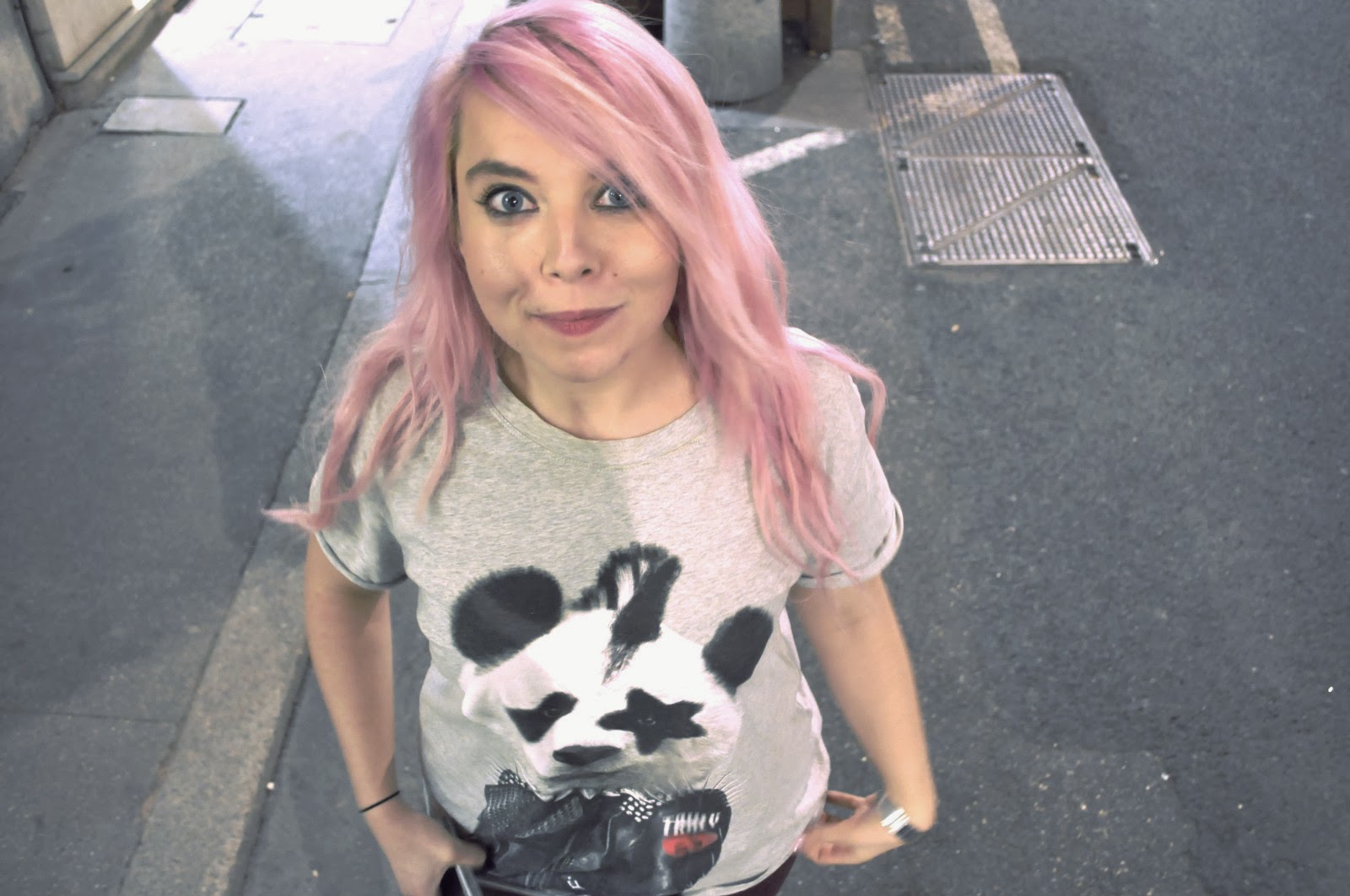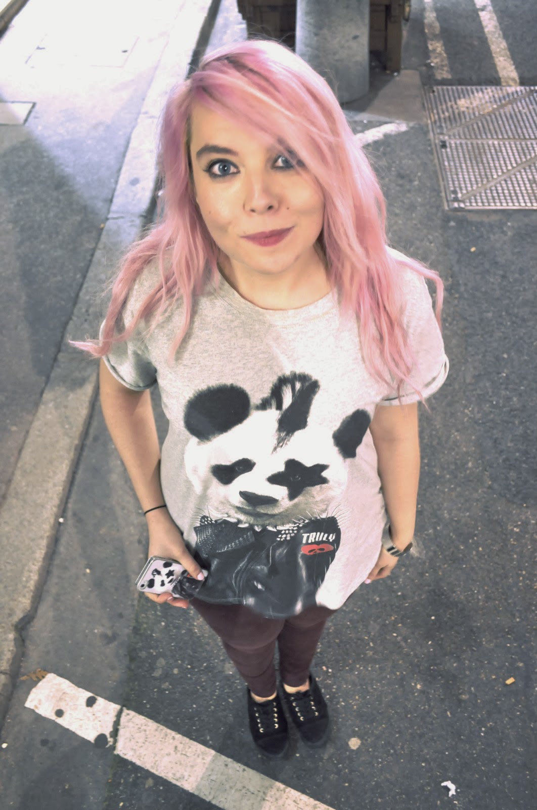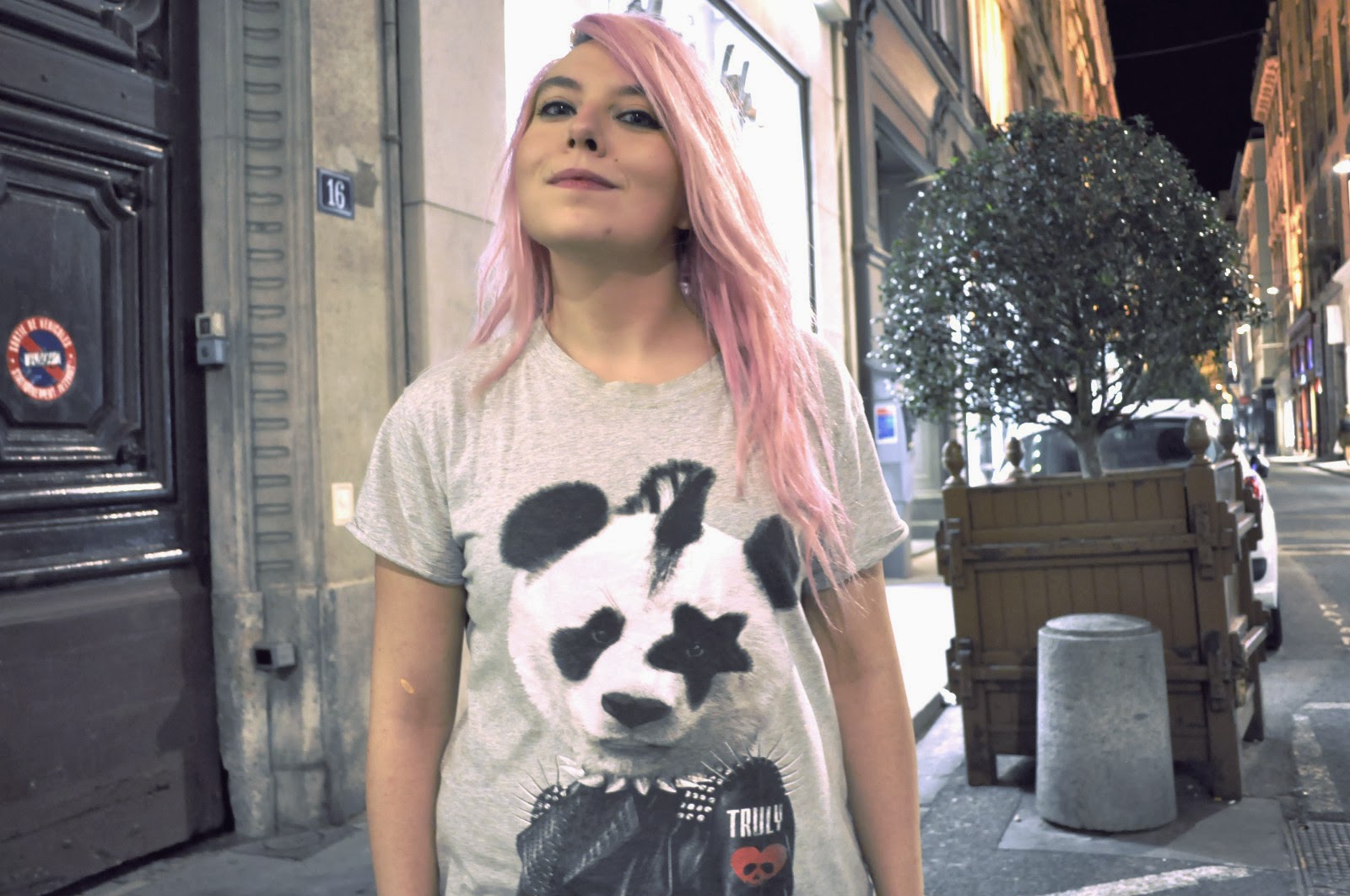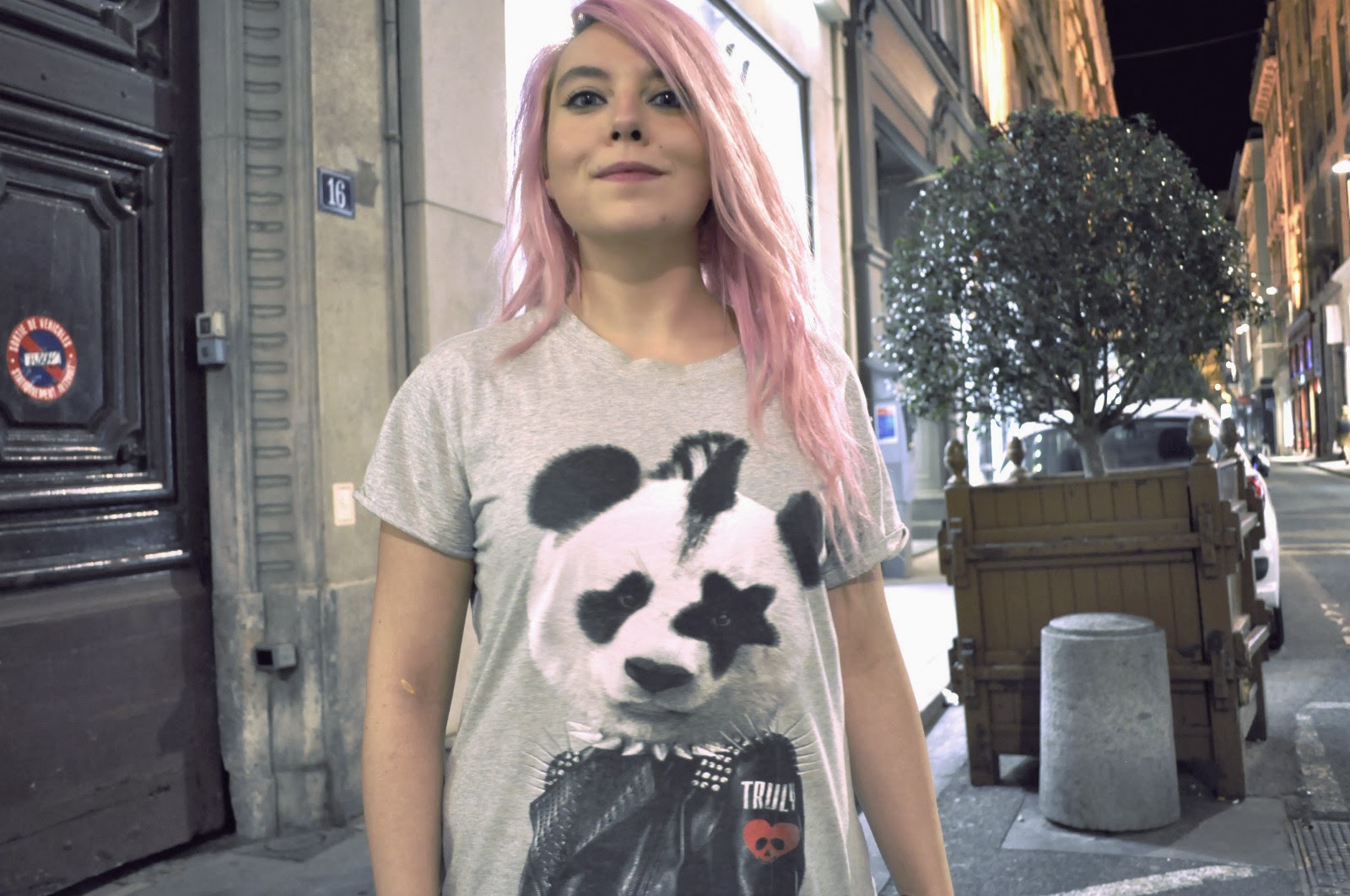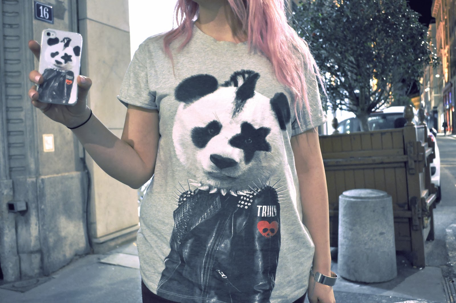 Je suis tombée amoureuse de ce tee. L'explication est simple. J'ai deux passions dans la vie. La framboise (le fruit hein), et tout ce qui en est composé, et les pandas. Alors un panda punk, ou panda rock, comme vous préférez hein, ça ne pouvait être que pour moi.