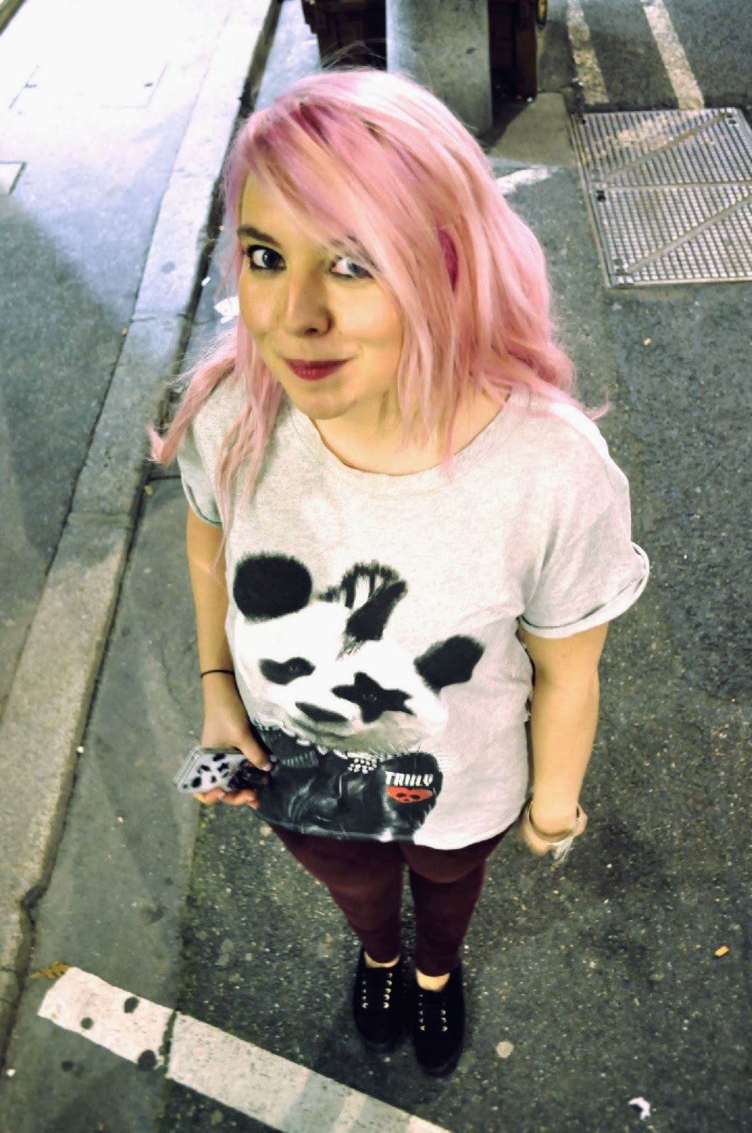 Je suis tombée amoureuse de ce tee. L'explication est simple. J'ai deux passions dans la vie. La framboise (le fruit hein), et tout ce qui en est composé, et les pandas. Alors un panda punk, ou panda rock, comme vous préférez hein, ça ne pouvait être que pour moi.
